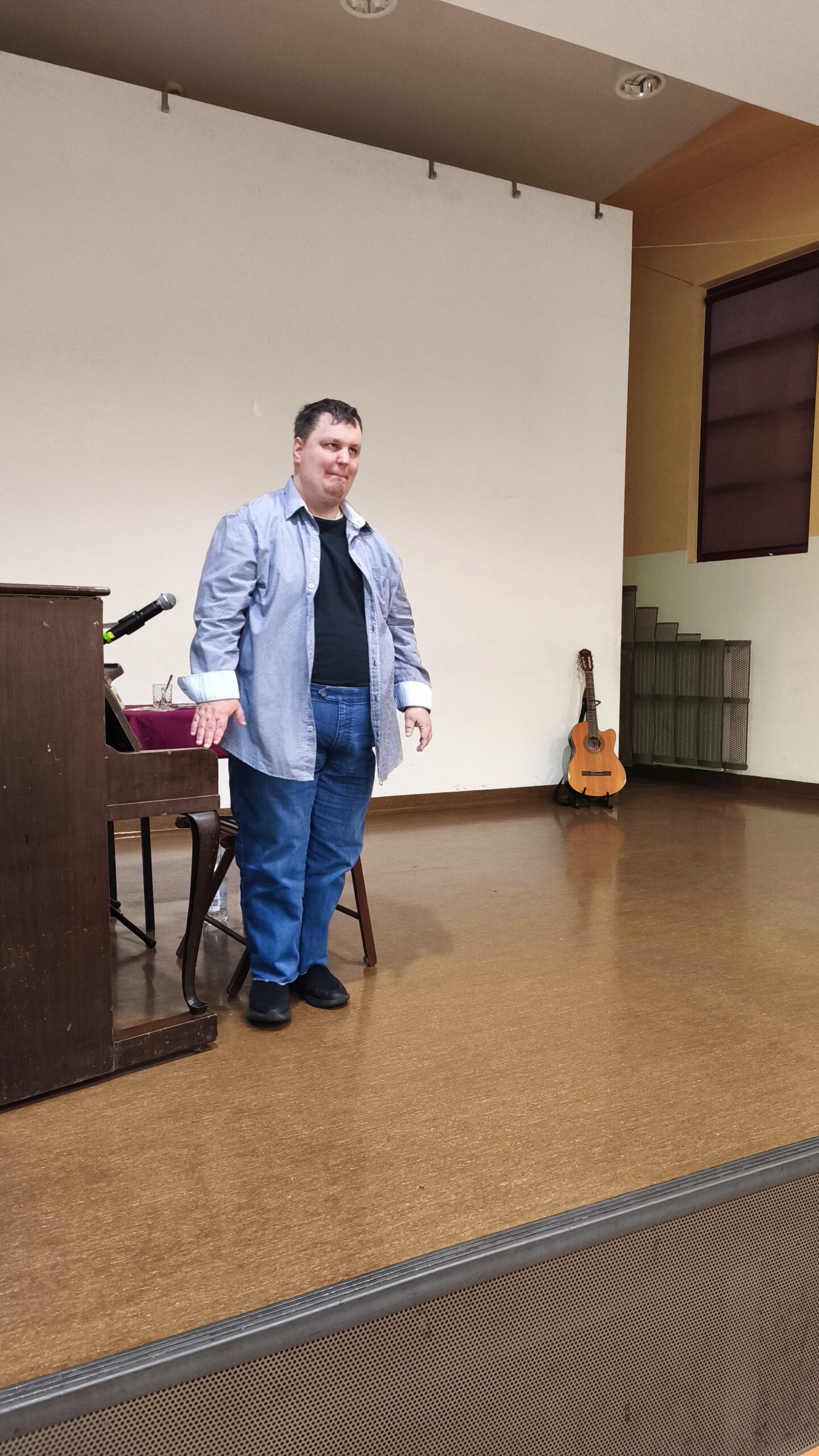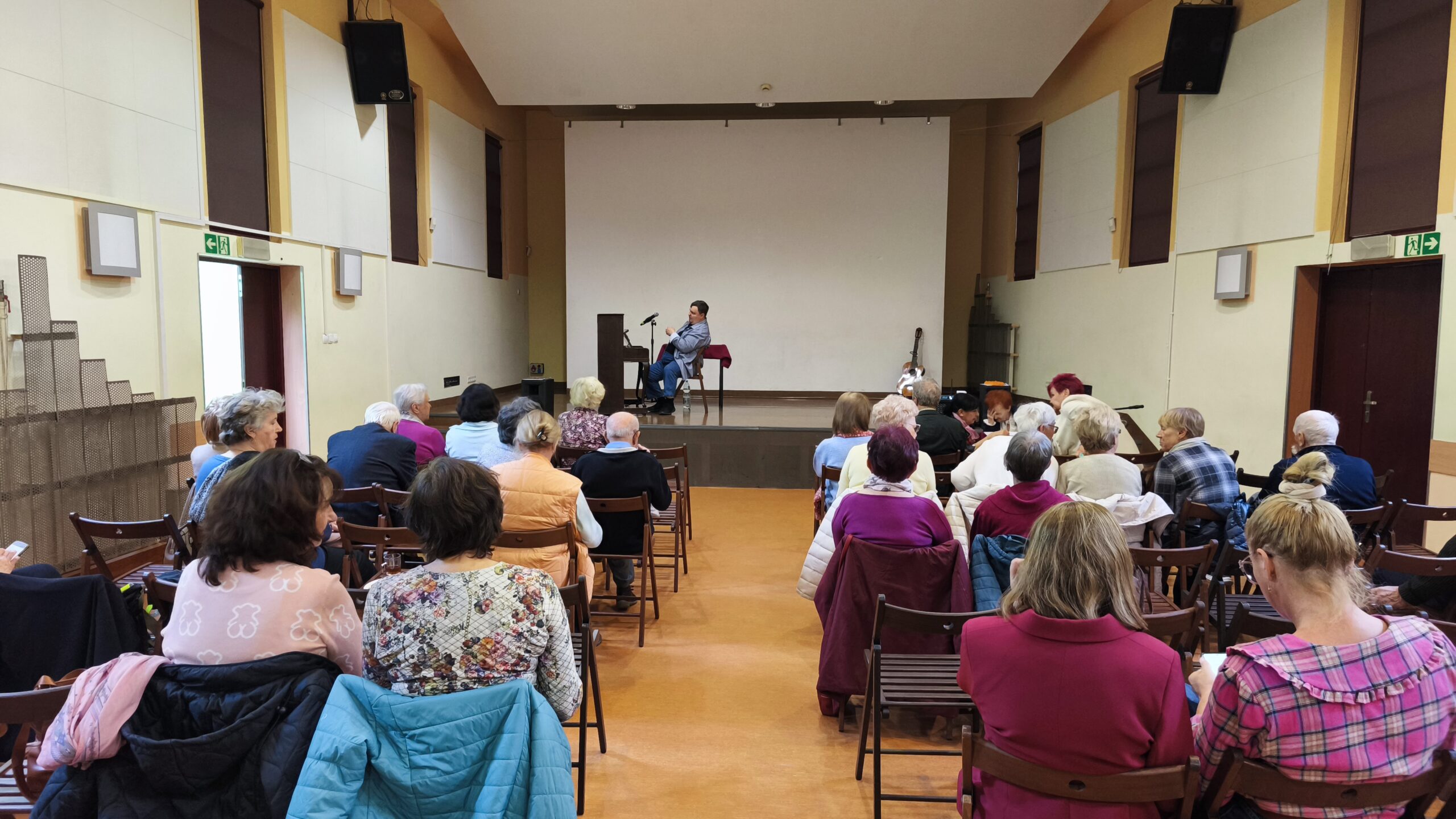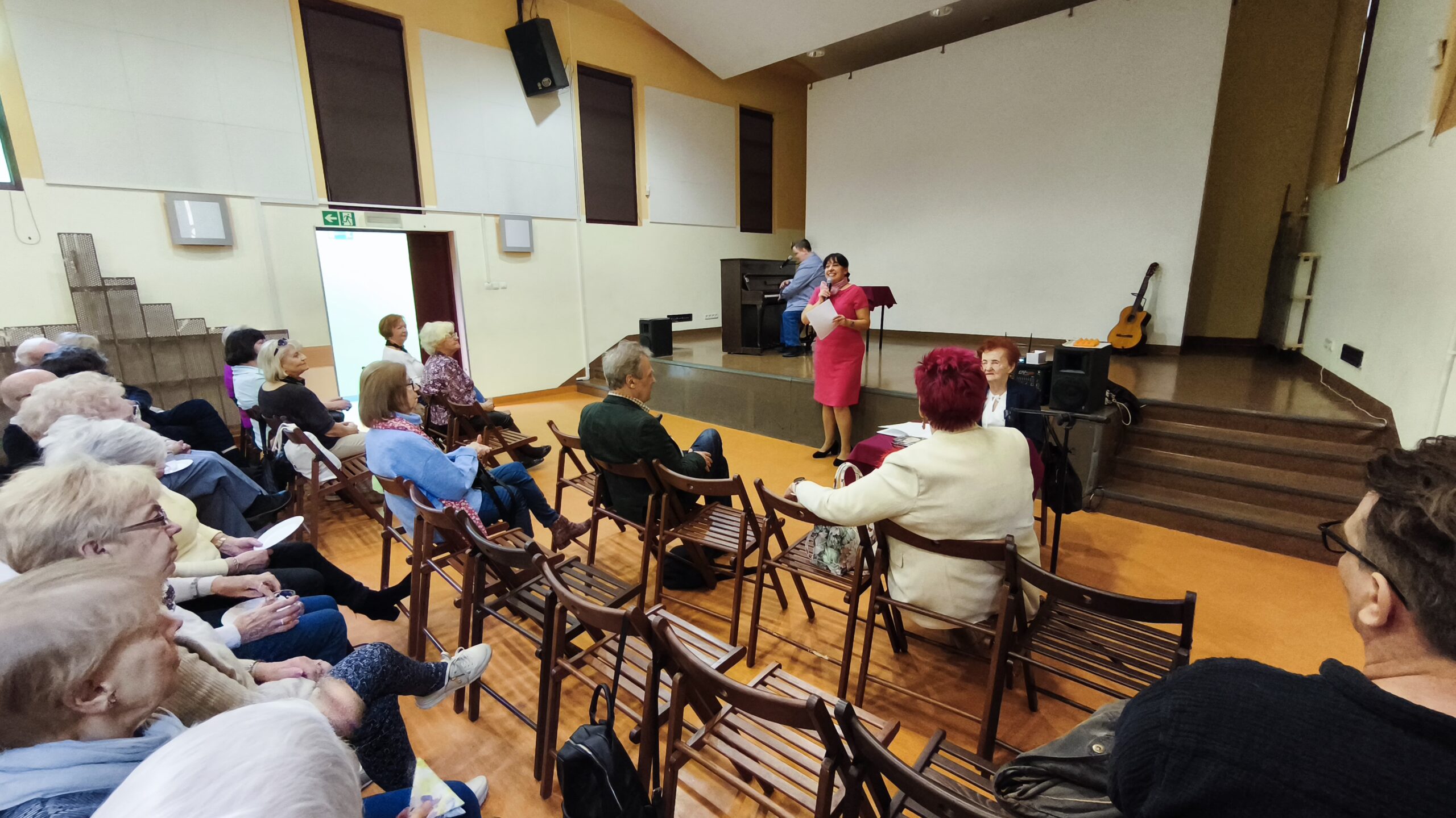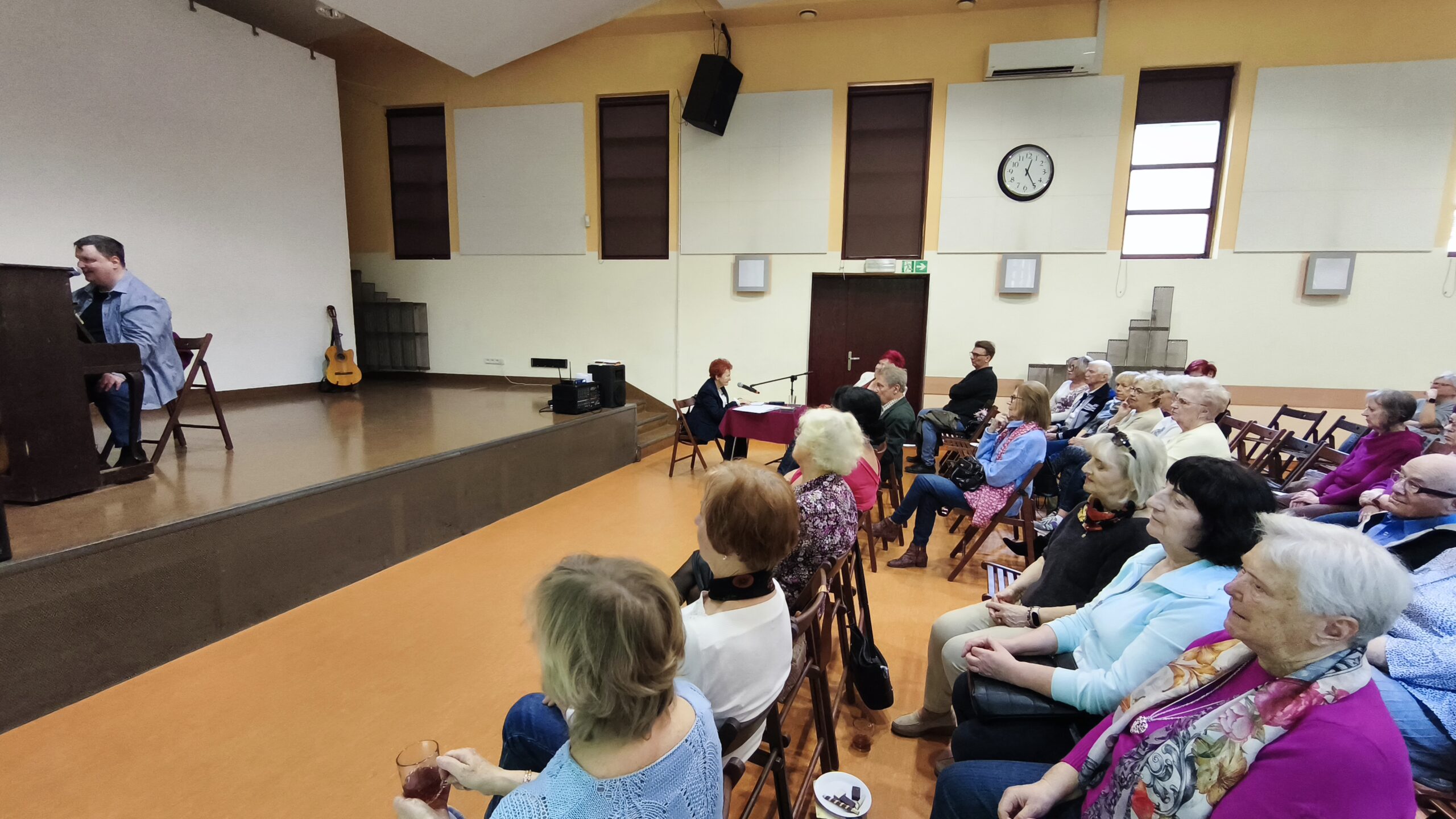 Ponad półtoragodzinny koncert obfitował w emocje i muzyczną różnorodność. Do wspólnego śpiewania dołączyła również Pani Dyrektor Eleonora Maras, która nie tylko zaśpiewała w esperanto, ale także zagrała na gitarze, tworząc z Carstenem niezwykle ciepły i spontaniczny duet.
