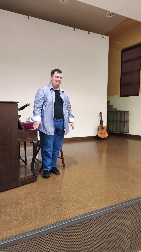 Na uczestników czekał także drobny słodki poczęstunek, który dopełnił atmosferę spotkania. Warto podkreślić, że zarówno Pani Halina, jak i Carsten są osobami niewidomymi. Ich obecność na scenie, talent i determinacja stanowią inspirujący dowód na to, że pasja i twórcza energia nie znają żadnych barier.